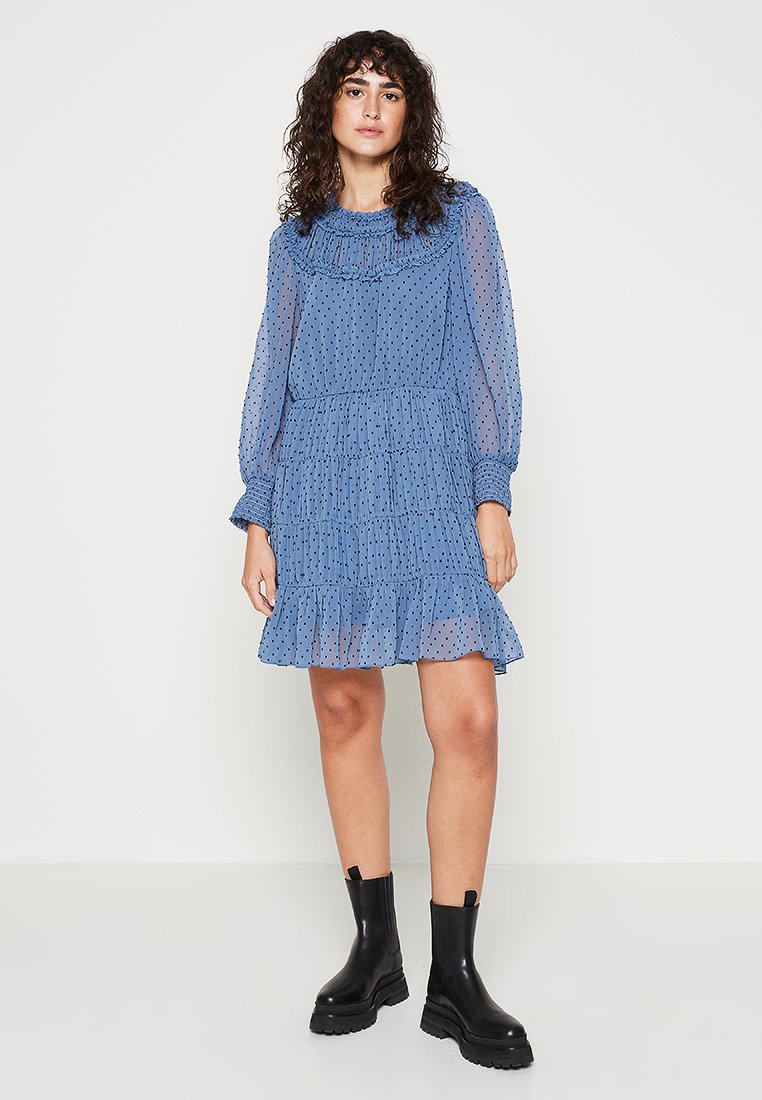 Stay cool and chic in this Casual/Elegant blue dress from sandro. Perfect for the Spring/Summer season, this versatile piece is a must-have for any woman's wardrobe. The dress features a flattering silhouette and delicate details, making it ideal for both casual outings and special occasions. Elevate your style effortlessly with this timeless and sophisticated dress.