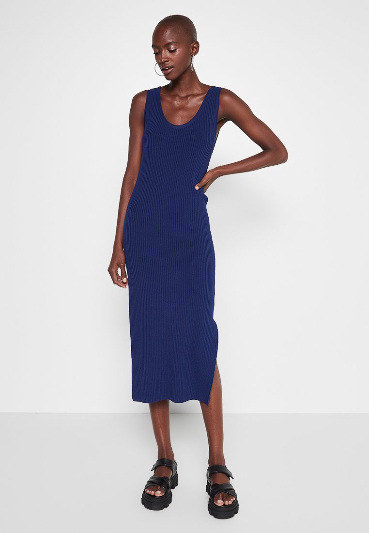 Stay effortlessly stylish this Spring/Summer with RIANI's Casual/Elegant Blue Dress. Perfect for any occasion, this versatile piece can be dressed up or down. Its airy fabric and flattering silhouette make it a must-have for the season. Elevate your wardrobe with this timeless and chic dress.