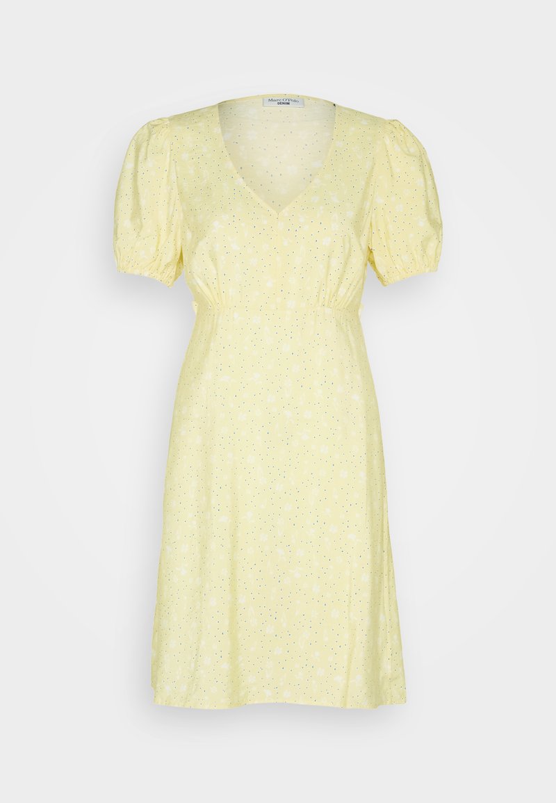 Introducing the Casual/Elegant Yellow dress from Marc O'Polo DENIM, perfect for the Spring/Summer season. This versatile piece combines effortless style with a touch of sophistication. Whether you're relaxing at a garden party or strolling along the beach, this dress is sure to turn heads. Stay chic and comfortable all season long with this must-have wardrobe staple.