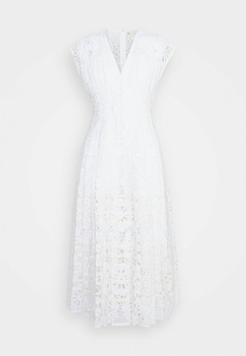 Introducing the Casual/Elegant women's dress from TORY BURCH in a crisp White color. Perfect for the Spring/Summer season, this stylish piece effortlessly combines comfort and sophistication. Whether you're headed to a daytime event or a garden party, this versatile dress will have you looking effortlessly chic. Embrace the warm weather in style with this must-have wardrobe staple.
