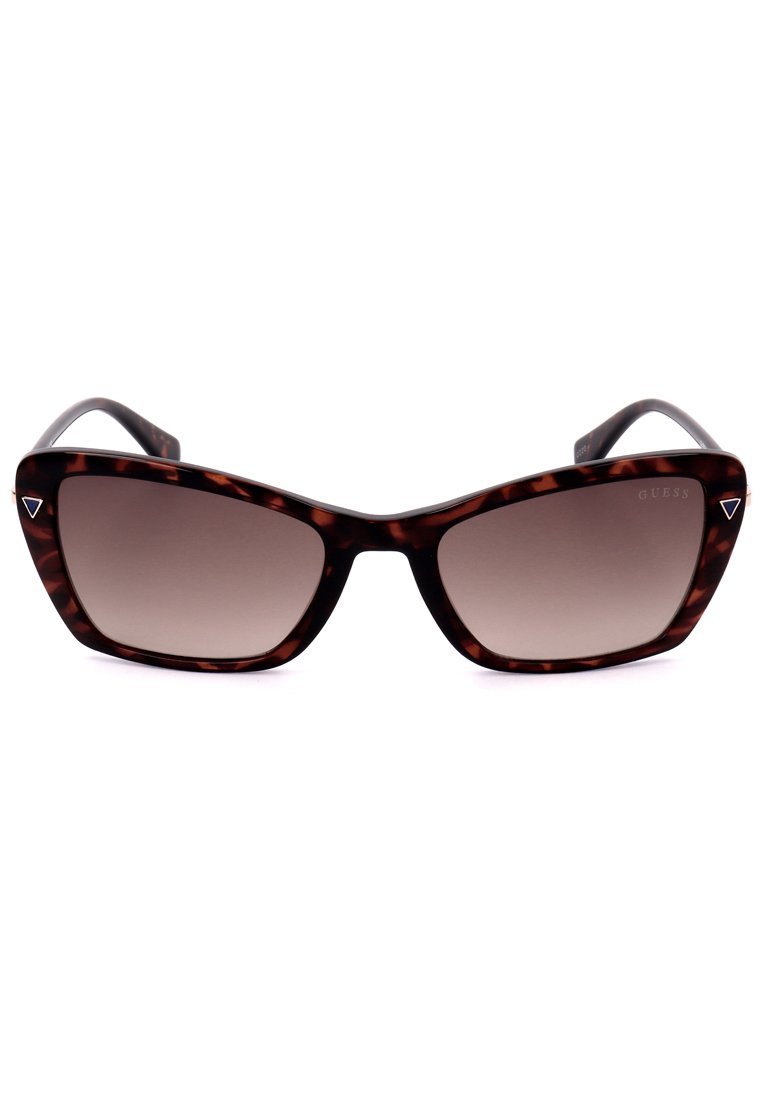 Elevate your spring/summer look with these stylish Guess sunglasses in a chic brown hue. Perfect for casual outings, these glasses for women feature a timeless design that complements any outfit. Stay on-trend while protecting your eyes from the sun in these fashionable and versatile shades. Add a touch of glamour to your ensemble with these must-have Guess sunglasses.