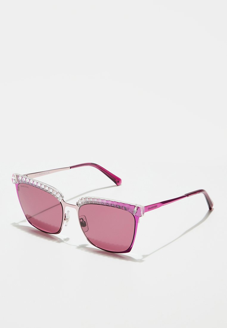 "Upgrade your Spring/Summer look with these stylish Swarovski sunglasses for women in a trendy violet hue. Perfect for a casual outfit, these glasses add a touch of glam to any ensemble. The high-quality design ensures both fashion and functionality. Elevate your accessory game with these chic shades."
