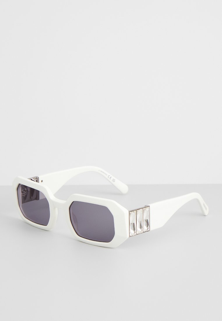 Upgrade your look with these Swarovski casual style glasses for women, perfect for the Spring/Summer season. The crisp white color adds a fresh touch to any outfit. These sunglasses are both fashionable and functional, making them a must-have accessory for sunny days. Elevate your style effortlessly with this chic pair of glasses.