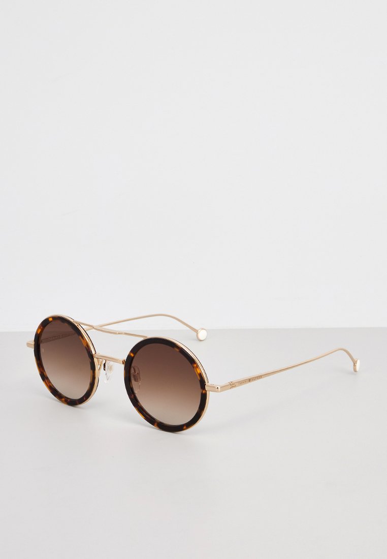Elevate your casual style with these Tommy Hilfiger women's sunglasses in a trendy brown color. Perfect for the Spring/Summer season, these glasses feature a modern design that effortlessly complements any outfit. Stay chic and protected from the sun in these stylish shades. A must-have accessory for the fashion-forward woman.