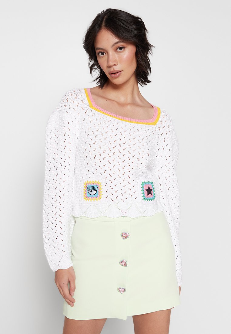 Stay cozy and chic this Autumn/Winter season with the Casual Hoodie for Women from CHIARA FERRAGNI. In a crisp White color, this stylish hoodie is perfect for layering over any outfit. The maglione features a relaxed fit and soft fabric for ultimate comfort. Elevate your wardrobe with this versatile and trendy piece.