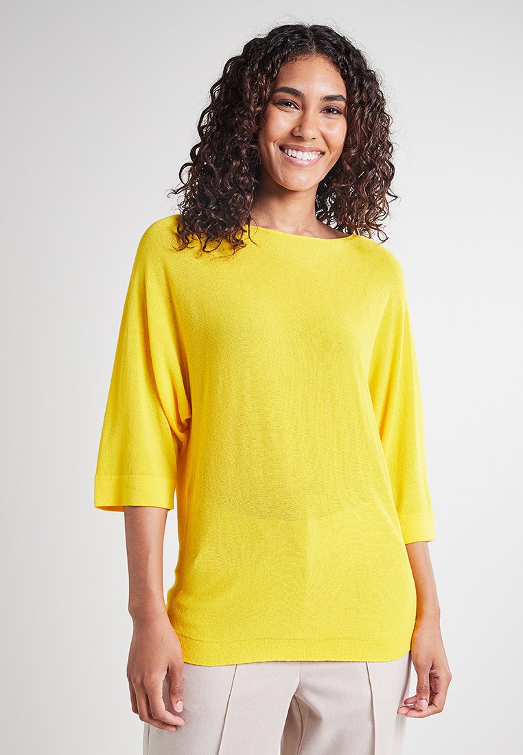 Stay cozy and stylish this Autumn/Winter season with the Rich & Royal Casual Hoodie for Women. In a vibrant yellow color, this hoodie adds a pop of color to your wardrobe. Perfect for layering over a t-shirt or sweater, the maglione is a must-have for those chilly days. Upgrade your casual look with this comfortable and trendy piece.