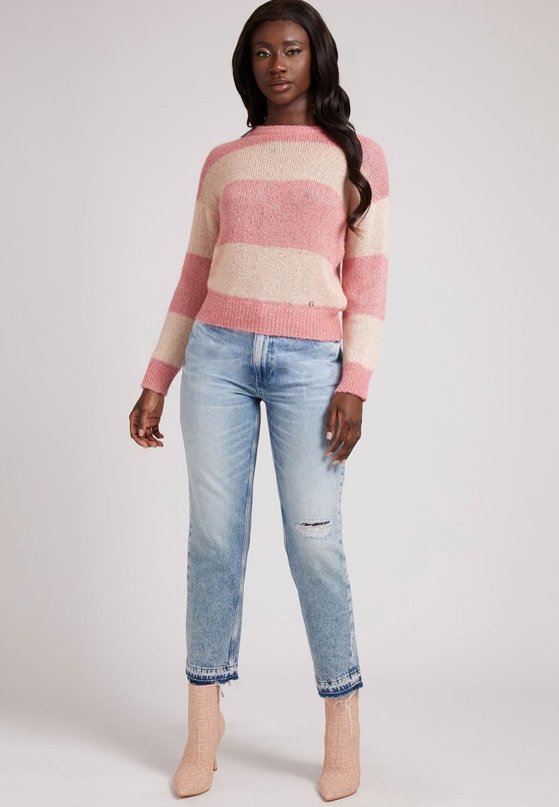 Stay cozy and stylish in this casual women's hoodie from Guess. Perfect for the Autumn/Winter season, this pink hoodie is a must-have for your wardrobe. The "maglione" features a comfortable fit and a trendy design, making it perfect for everyday wear. Add a pop of color to your outfit with this chic Guess hoodie.