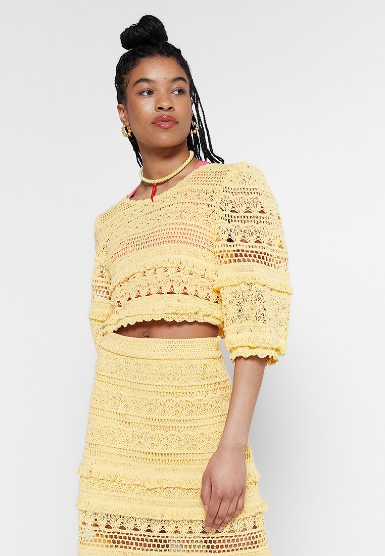Stay cozy and stylish this Autumn/Winter season with the Maje Casual Hoodie for Women in a vibrant Yellow hue. Perfect for layering on chilly days, this hoodie features a relaxed fit and a versatile design that pairs effortlessly with any outfit. Add a pop of color to your wardrobe with this must-have maglione from Maje.