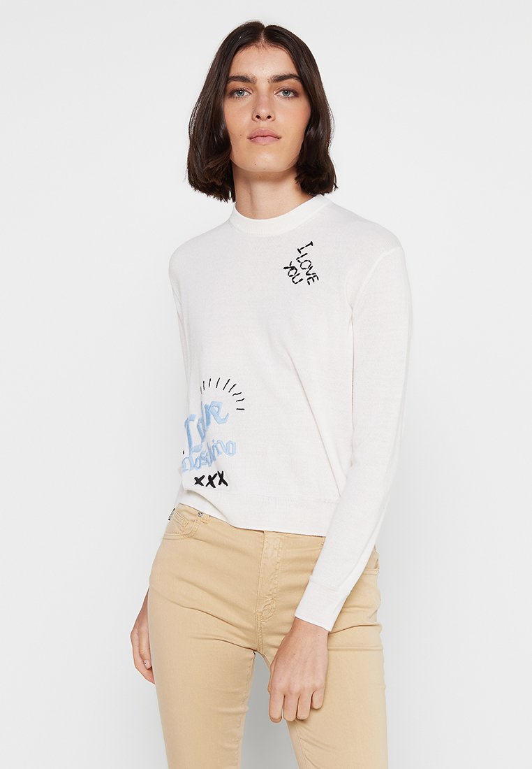 Stay cozy and stylish this Autumn/Winter season with the Casual Hoodie for Women from Love Moschino. This white hoodie is perfect for layering over your favorite outfits for a chic and relaxed look. Made from high-quality materials, the maglione is a must-have addition to your cold-weather wardrobe. Elevate your casual style with this versatile and fashionable piece from Love Moschino.