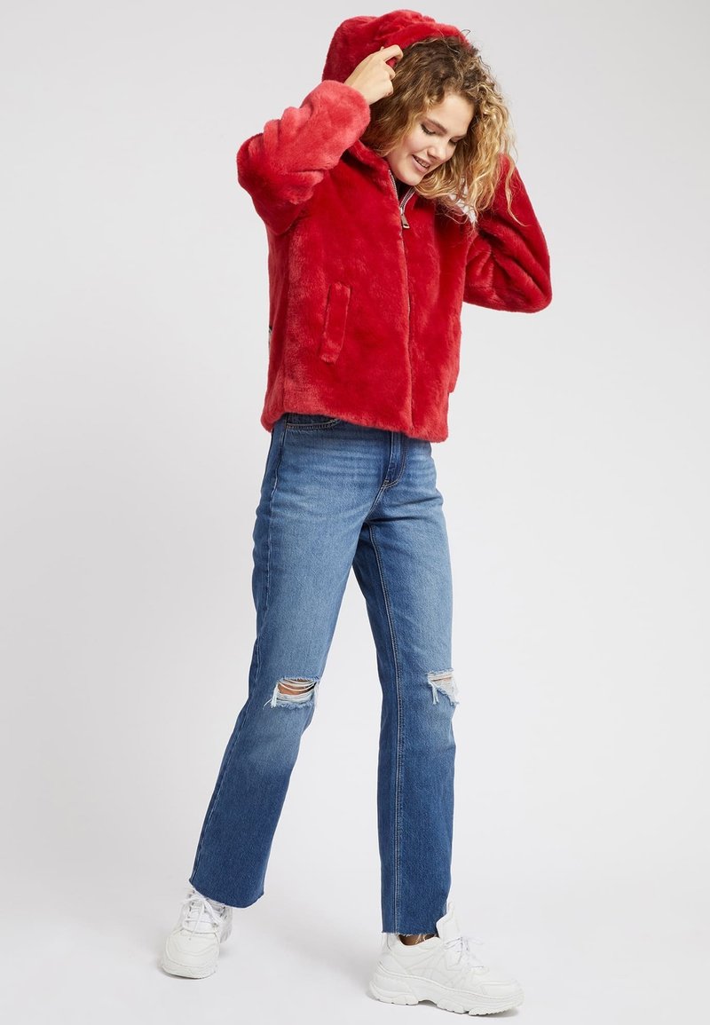 Stay cozy and stylish this Autumn/Winter season with the Guess Casual Women's Hoodie in a vibrant Red color. This zip-up hoodie is perfect for adding a pop of color to your outfit, whether you're running errands or hanging out with friends. The relaxed fit and soft fabric make it ideal for layering on chilly days. Elevate your casual look with this must-have piece from Guess.