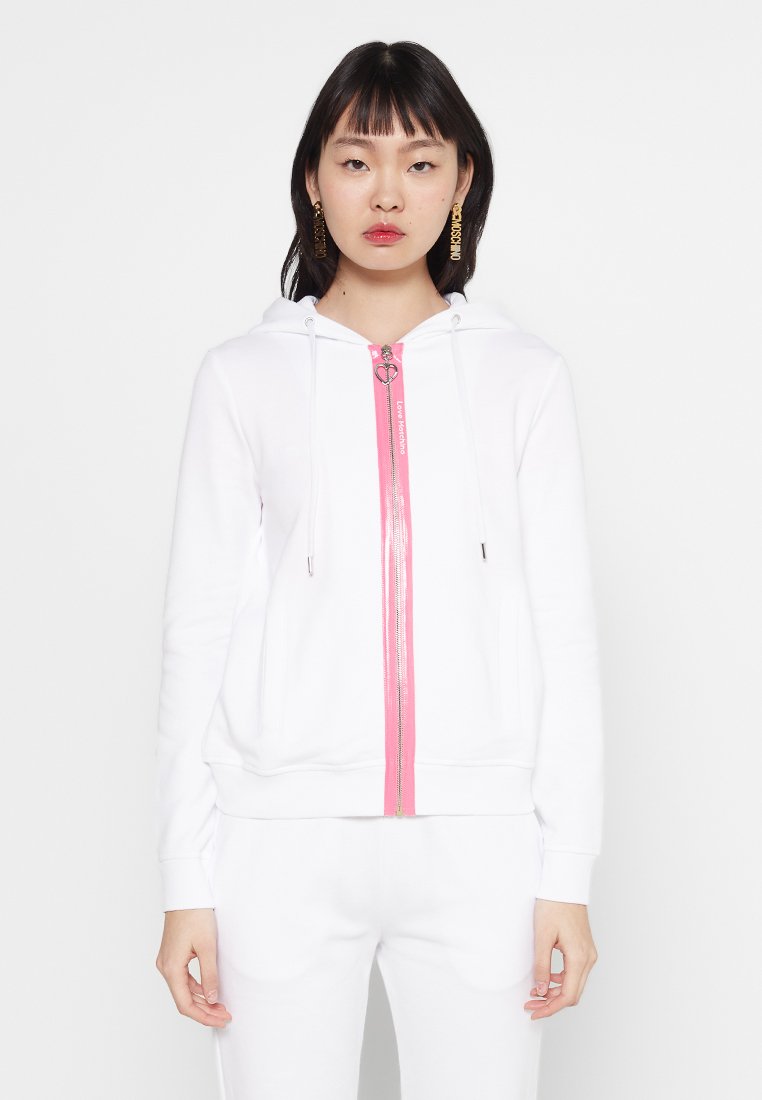 Stay cozy and chic this Autumn/Winter season with the Love Moschino Casual Hoodie for Women. In a crisp White color, this zip-up hoodie is perfect for layering over your favorite outfits. Whether you're running errands or relaxing at home, this stylish hoodie will keep you warm and on-trend. Add a touch of luxury to your wardrobe with this must-have piece from Love Moschino.