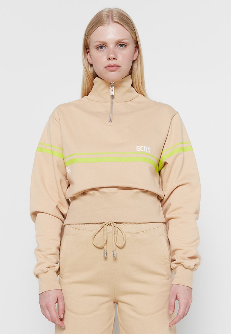 Stay cozy and stylish in this beige Casual Hoodie for Women from GCDS. Perfect for the Autumn/Winter season, this felpa features a relaxed fit and a chic design. Made with high-quality materials, this hoodie is a must-have for your cold weather wardrobe. Upgrade your casual look with this trendy GCDS hoodie.