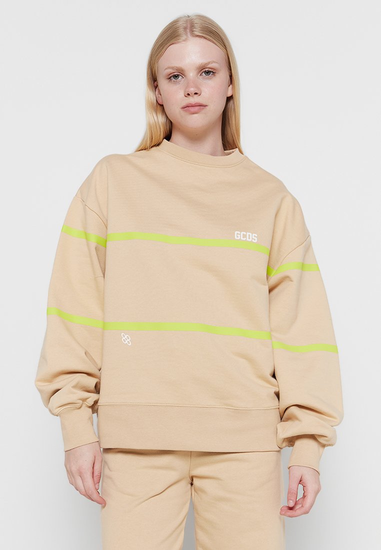 Stay cozy and stylish in this beige Casual Hoodie for Women from GCDS. Perfect for the Autumn/Winter season, this felpa features a relaxed fit and a chic design. Made with high-quality materials, this hoodie is a must-have for your cold weather wardrobe. Upgrade your casual look with this trendy GCDS hoodie.