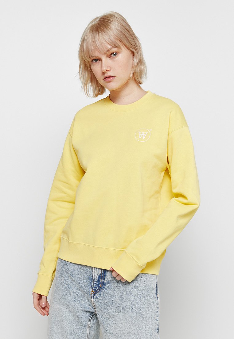 Stay cozy and stylish this Autumn/Winter season with the casual Women's Yellow Hoodie from Wood Wood. Made for comfort and warmth, this felpa is perfect for layering on chilly days. The bright yellow color adds a pop of color to your wardrobe, while the relaxed fit makes it easy to pair with your favorite jeans or leggings. Elevate your everyday look with this must-have hoodie.