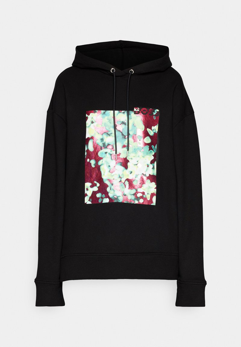 Stay cozy and stylish in the Boss Casual Women's Hoodie for the Autumn/Winter season. This black hoodie is perfect for layering on chilly days. Made with soft and comfortable fabric, the felpa features a relaxed fit and a classic design that pairs well with any outfit. Elevate your casual look with this versatile and fashionable piece from Boss.