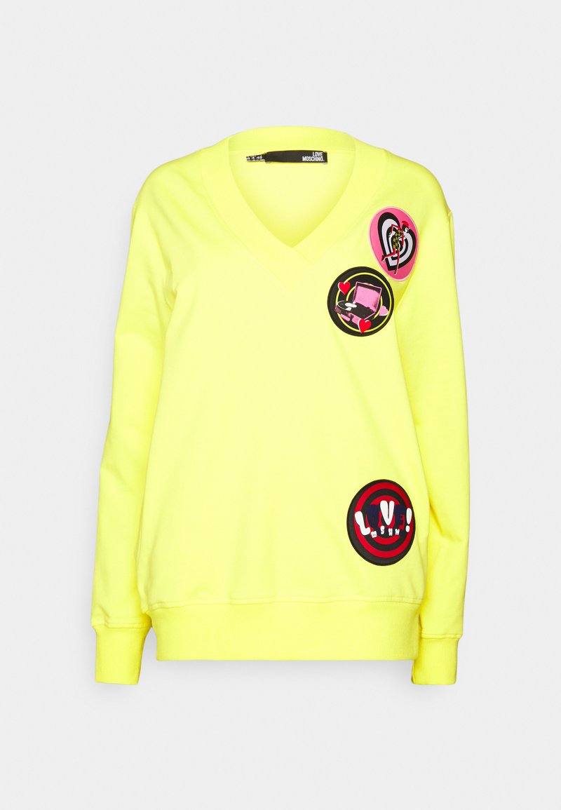 Stay cozy and stylish in this Casual Hoodie for Women from Love Moschino. Designed for the Autumn/Winter season, this yellow hoodie is perfect for adding a pop of color to your wardrobe. The relaxed fit and soft fabric make it ideal for layering on colder days. Elevate your casual look with this must-have Felpa.
