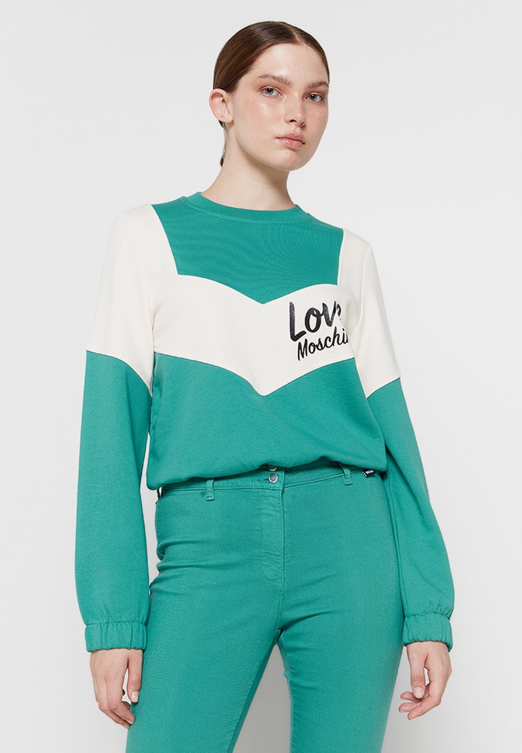 Stay cozy and chic this Autumn/Winter season with the Casual style Hoodie for Women from the brand Love Moschino. In a fashionable Green color, this felpa is perfect for adding a pop of color to any outfit. Whether you're running errands or relaxing at home, this hoodie is a must-have piece for your wardrobe. Elevate your casual look with this stylish and comfortable Love Moschino hoodie.