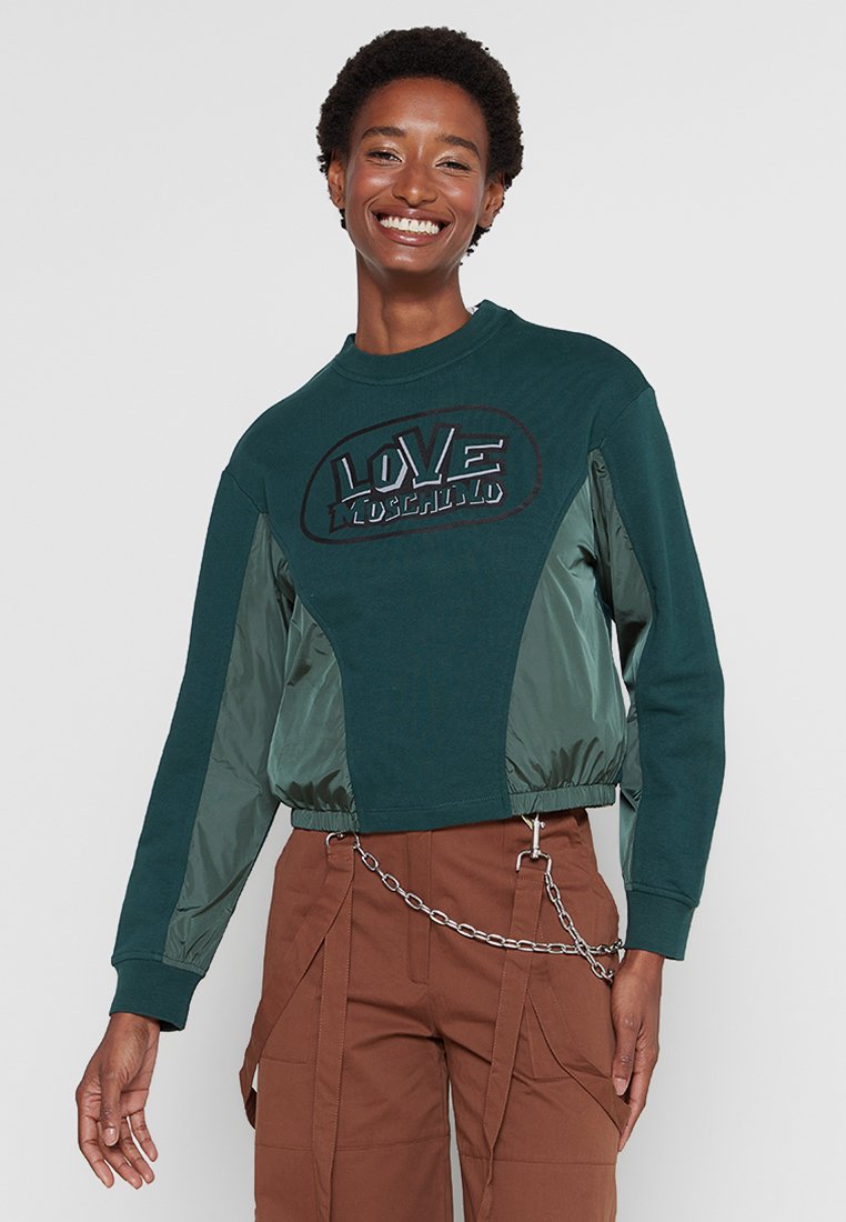 Stay cozy and chic this Autumn/Winter season with the Casual style Hoodie for Women from the brand Love Moschino. In a fashionable Green color, this felpa is perfect for adding a pop of color to any outfit. Whether you're running errands or relaxing at home, this hoodie is a must-have piece for your wardrobe. Elevate your casual look with this stylish and comfortable Love Moschino hoodie.