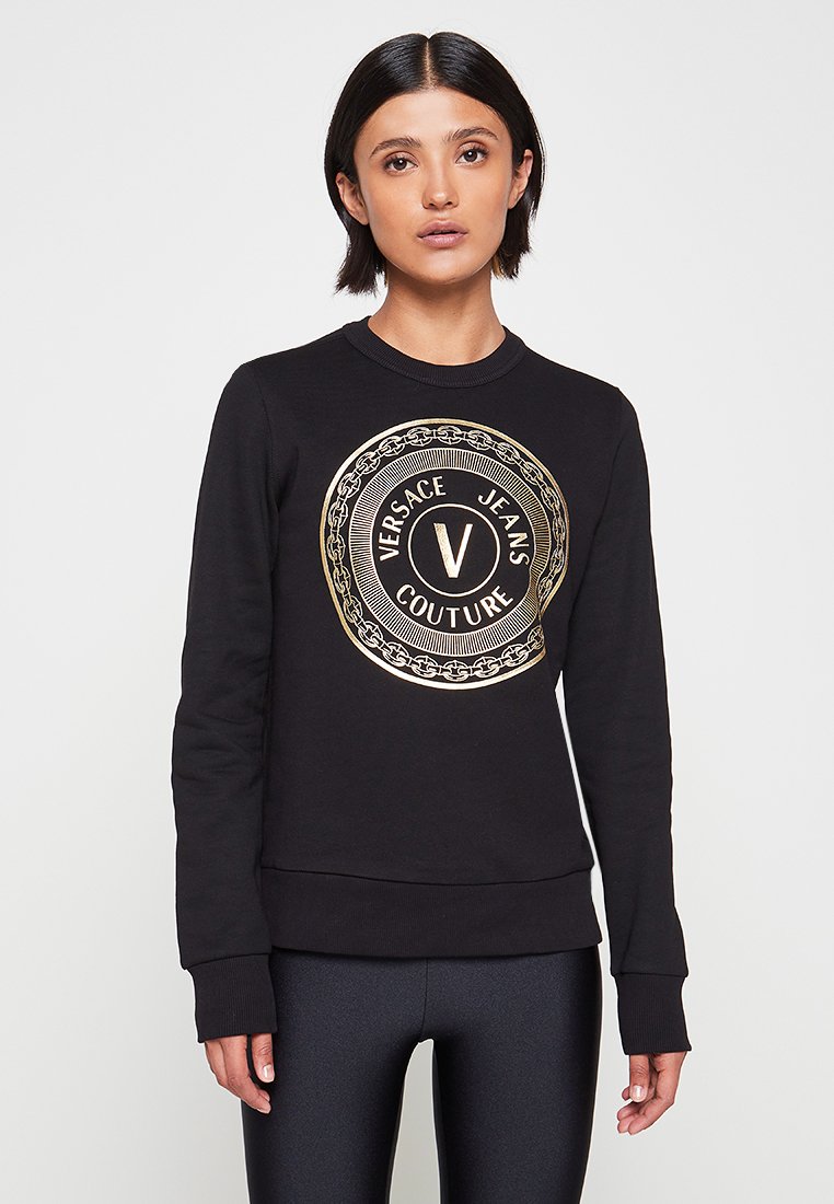 Stay cozy and stylish in this Casual Women's Hoodie from Versace Jeans Couture. Perfect for the Autumn/Winter season, this black hoodie features the brand's iconic logo on the front. Made for comfort and trendiness, this felpa is a versatile addition to any wardrobe. Elevate your casual look with this chic hoodie.