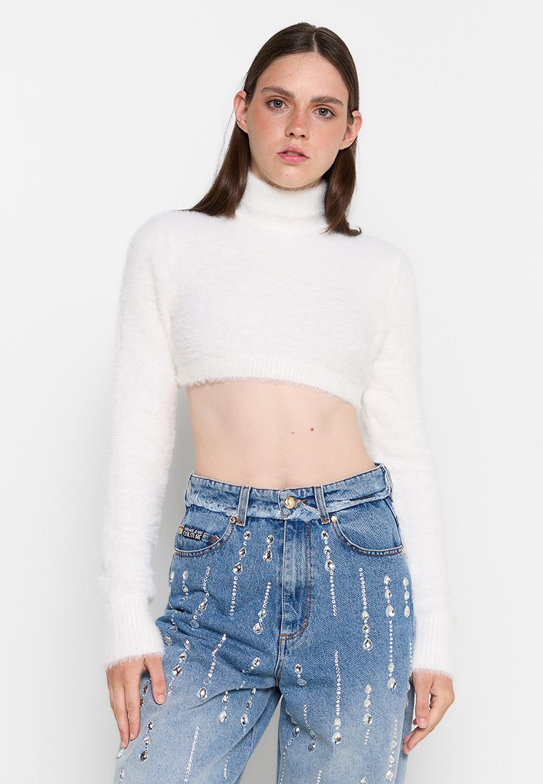 Stay warm and stylish this Autumn/Winter season with the Versace Jeans Couture Casual Women's Hoodie. This classic white hoodie is the perfect addition to your wardrobe for a cozy and fashionable look. Made with high-quality materials, this hoodie is both comfortable and chic. Whether you're running errands or relaxing at home, the Versace Jeans Couture white hoodie is a must-have for any fashion-forward woman.
