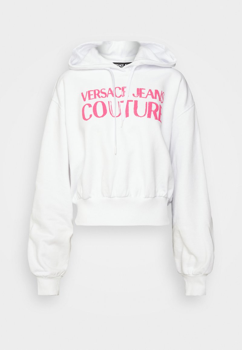 Stay warm and stylish this Autumn/Winter season with the Versace Jeans Couture Casual Women's Hoodie. This classic white hoodie is the perfect addition to your wardrobe for a cozy and fashionable look. Made with high-quality materials, this hoodie is both comfortable and chic. Whether you're running errands or relaxing at home, the Versace Jeans Couture white hoodie is a must-have for any fashion-forward woman.