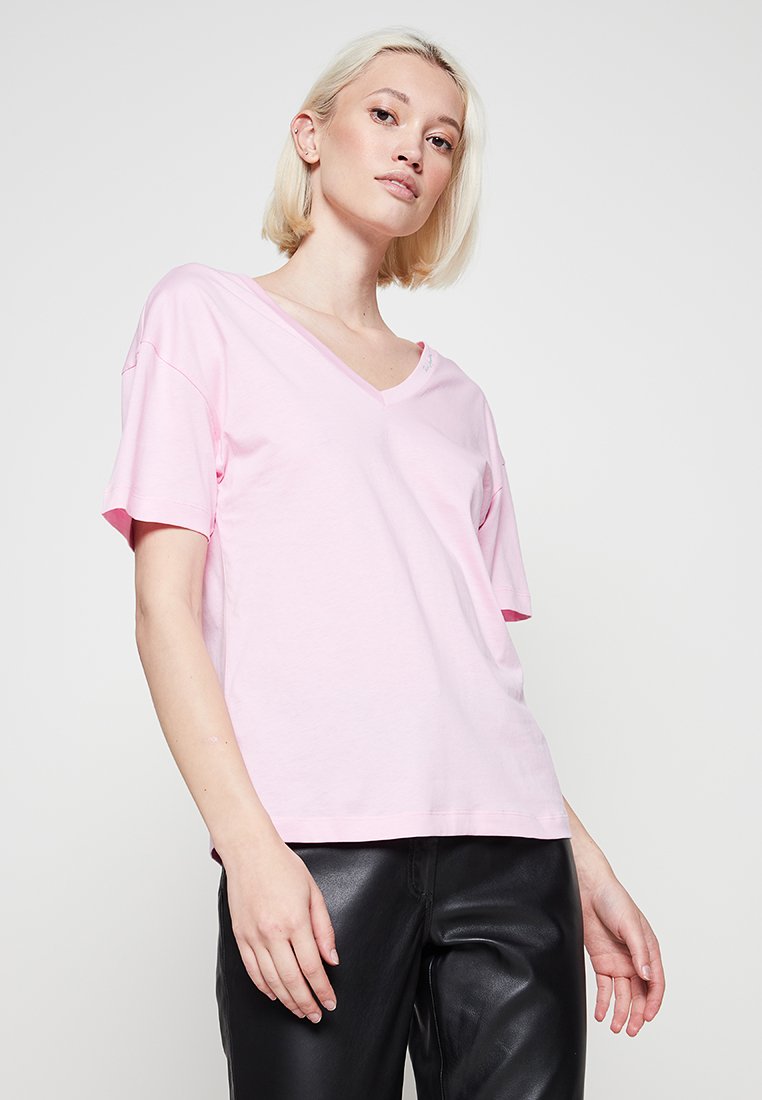 Add a pop of color to your Spring/Summer wardrobe with this Karl Lagerfeld Women's Casual T-Shirt. Made from soft cotton fabric, this pink tee is perfect for everyday wear. The relaxed fit and subtle logo detail on the chest make it a versatile and stylish choice. Whether paired with jeans or shorts, this basic t-shirt is a must-have for your casual wardrobe.