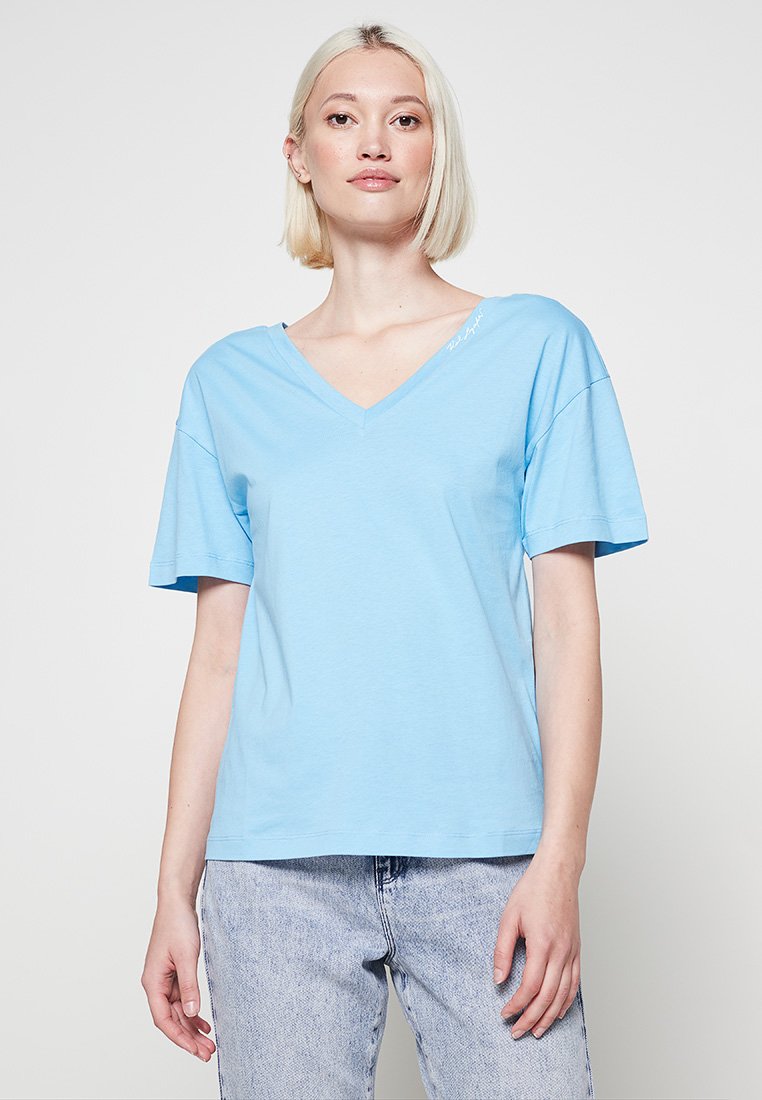Elevate your casual look this Spring/Summer with the Karl Lagerfeld Casual Women's T-shirt in a chic shade of Blue. This basic tee exudes effortless style and comfort, making it a versatile wardrobe staple. Pair it with jeans or a skirt for a laid-back yet trendy ensemble. Upgrade your outfit with this must-have piece from Karl Lagerfeld.