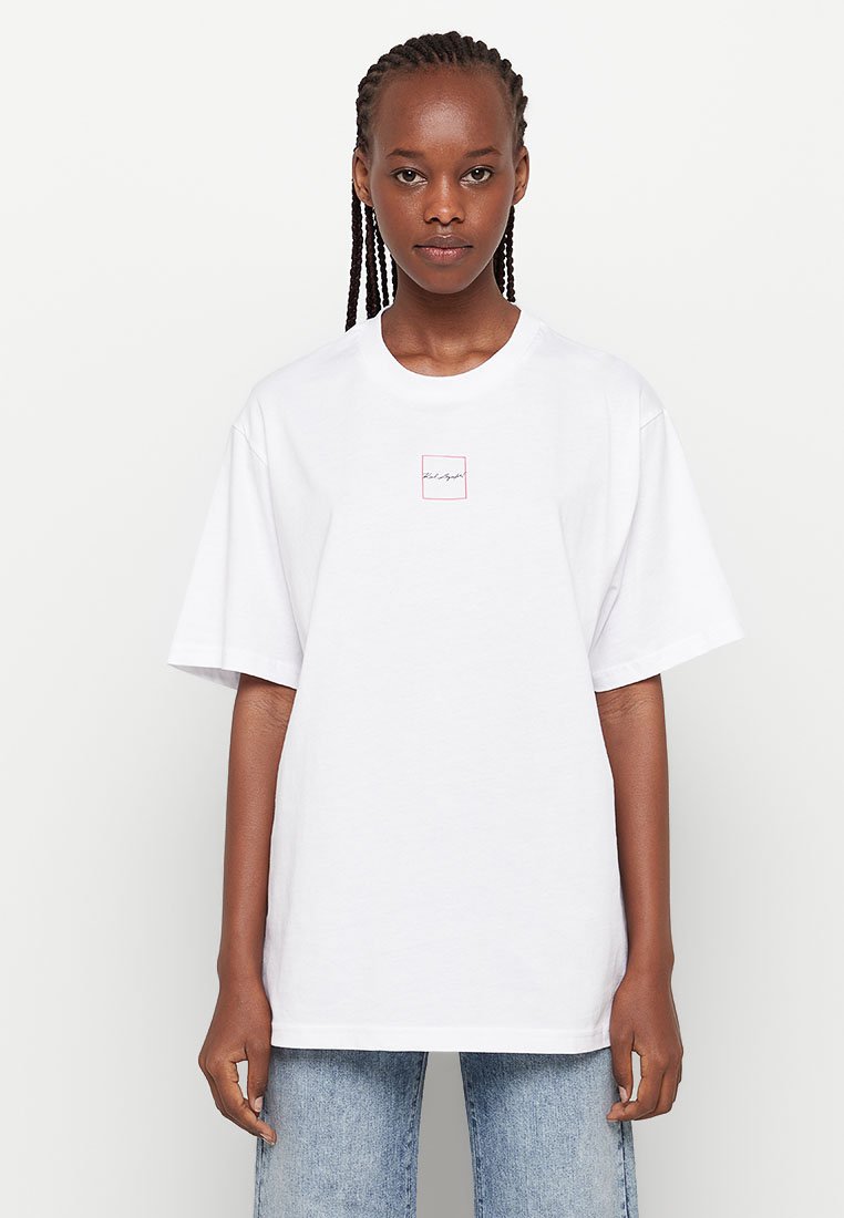 Stay effortlessly chic in this Karl Lagerfeld Women's Casual T-Shirt for the Spring/Summer season. Crafted in crisp white, this basic tee is perfect for everyday wear. With its relaxed fit and subtle logo detail, it's a must-have staple for any wardrobe. Elevate your casual style with this classic piece.