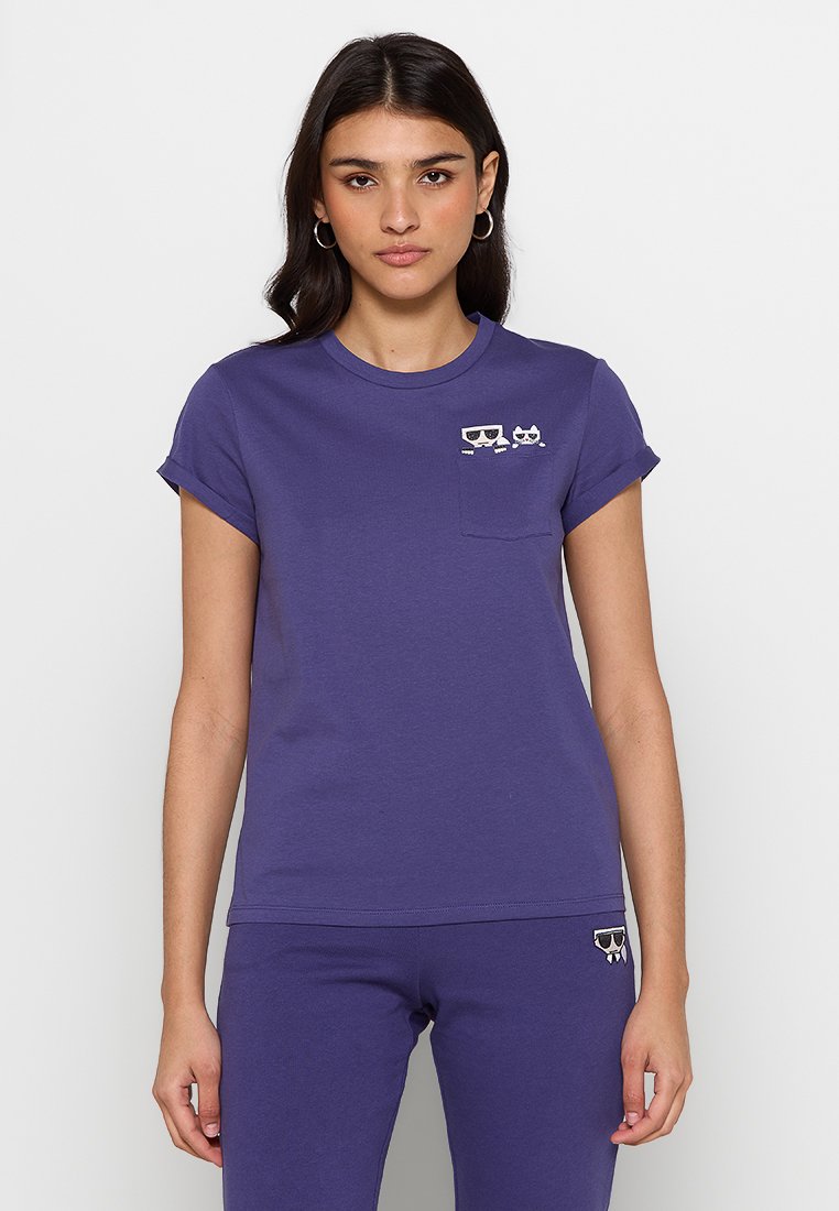 Stay stylish and comfortable this Spring/Summer season with the Karl Lagerfeld Women's Casual T-shirt in a vibrant violet hue. This basic tee is perfect for any casual outing, providing a pop of color to any outfit. Made with high-quality materials, this T-shirt exudes elegance and sophistication, making it a must-have for your wardrobe. Elevate your everyday look with this chic Karl Lagerfeld T-shirt.