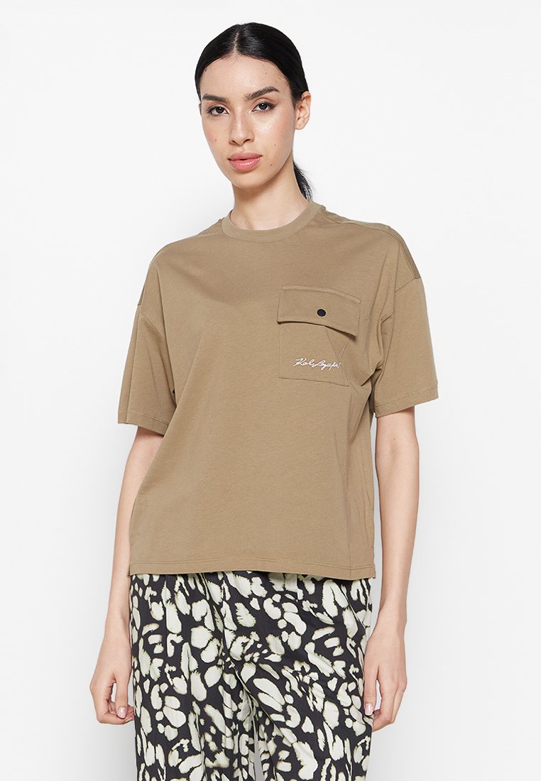 Elevate your casual chic look with this Karl Lagerfeld Basic T-Shirt for Women. Made for the Spring/Summer season, this beige tee is perfect for everyday wear. The soft fabric and relaxed fit make it a versatile piece for any wardrobe. Stay stylish and comfortable all season long with this must-have staple.
