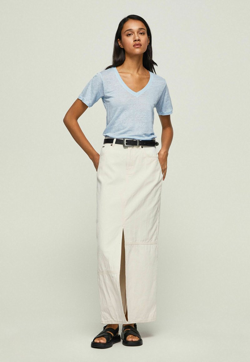 Get ready for the warmer months in style with this Pepe Jeans casual T-shirt for women. In a refreshing blue hue, this basic tee is perfect for spring and summer. Made for easy, everyday wear, this T-shirt effortlessly combines comfort and fashion. Elevate your casual look with this must-have wardrobe staple.