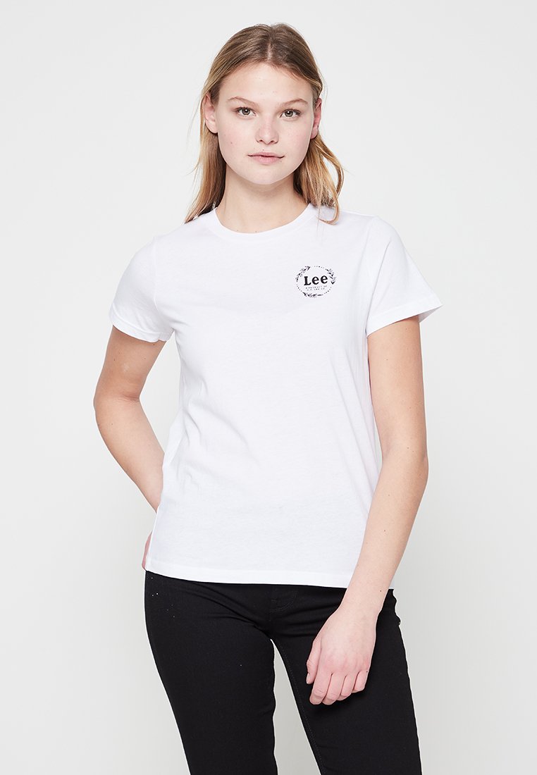 Stay cool and stylish this Spring/Summer with the Lee Women's Casual T-Shirt in crisp white. This basic tee is perfect for a laid-back, everyday look. The soft fabric and relaxed fit make it ideal for pairing with your favorite jeans or shorts. Elevate your casual style with this timeless wardrobe essential.