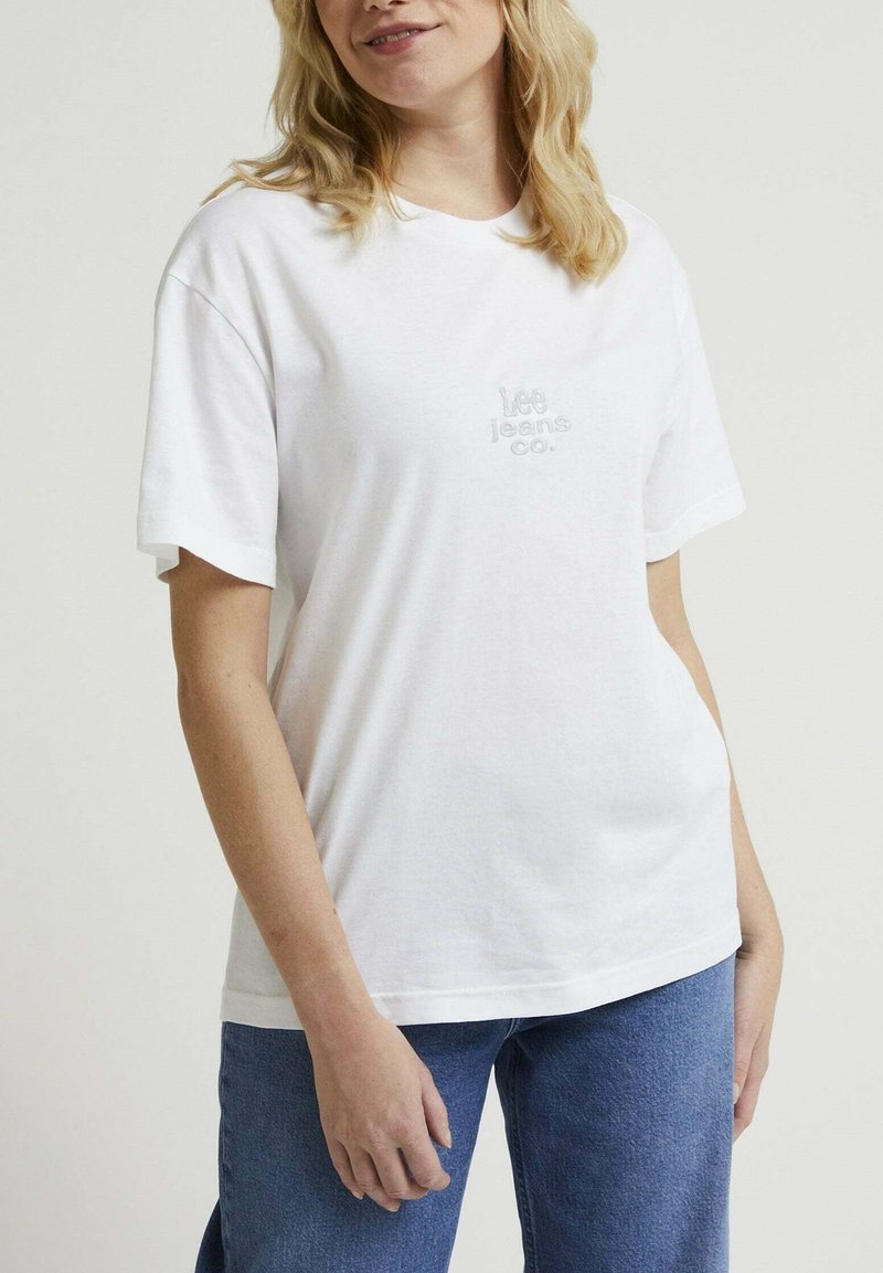 Stay cool and stylish this Spring/Summer with the Lee Women's Casual T-Shirt in crisp white. This basic tee is perfect for a laid-back, everyday look. The soft fabric and relaxed fit make it ideal for pairing with your favorite jeans or shorts. Elevate your casual style with this timeless wardrobe essential.