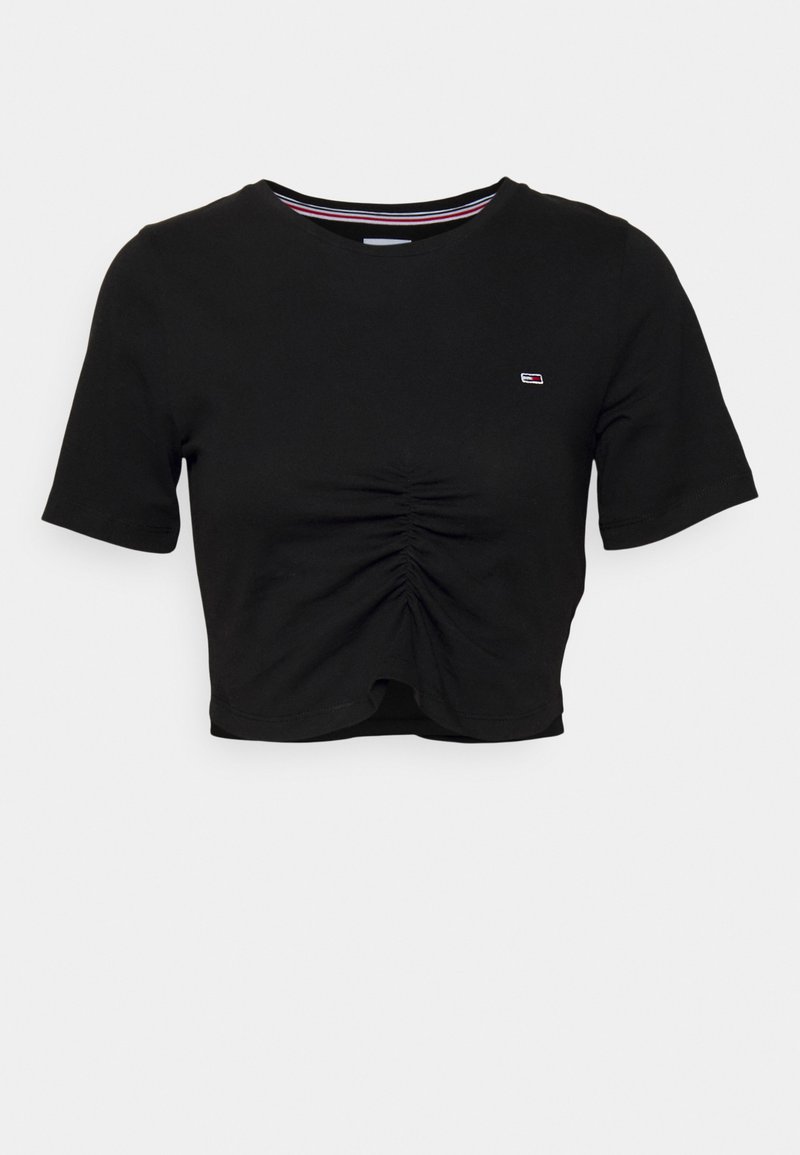 Stay effortlessly chic in this Tommy Jeans Basic T-Shirt for Women. Perfect for the warmer months, this casual and stylish tee in classic black is a must-have for your Spring/Summer wardrobe. Made with high-quality materials, this shirt is comfortable for all-day wear. Upgrade your casual look with this timeless piece from Tommy Jeans.