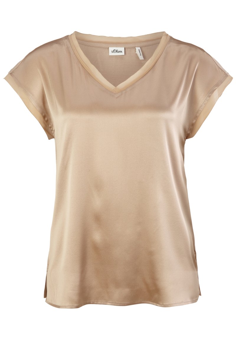 Elevate your casual look with this s.Oliver BLACK LABEL women's T-shirt in a trendy Beige color. Perfect for the Spring/Summer season, this basic tee is effortlessly stylish and versatile. Crafted with quality materials, it offers comfort and a flattering fit for everyday wear. Update your wardrobe with this must-have staple for a chic and effortless outfit.