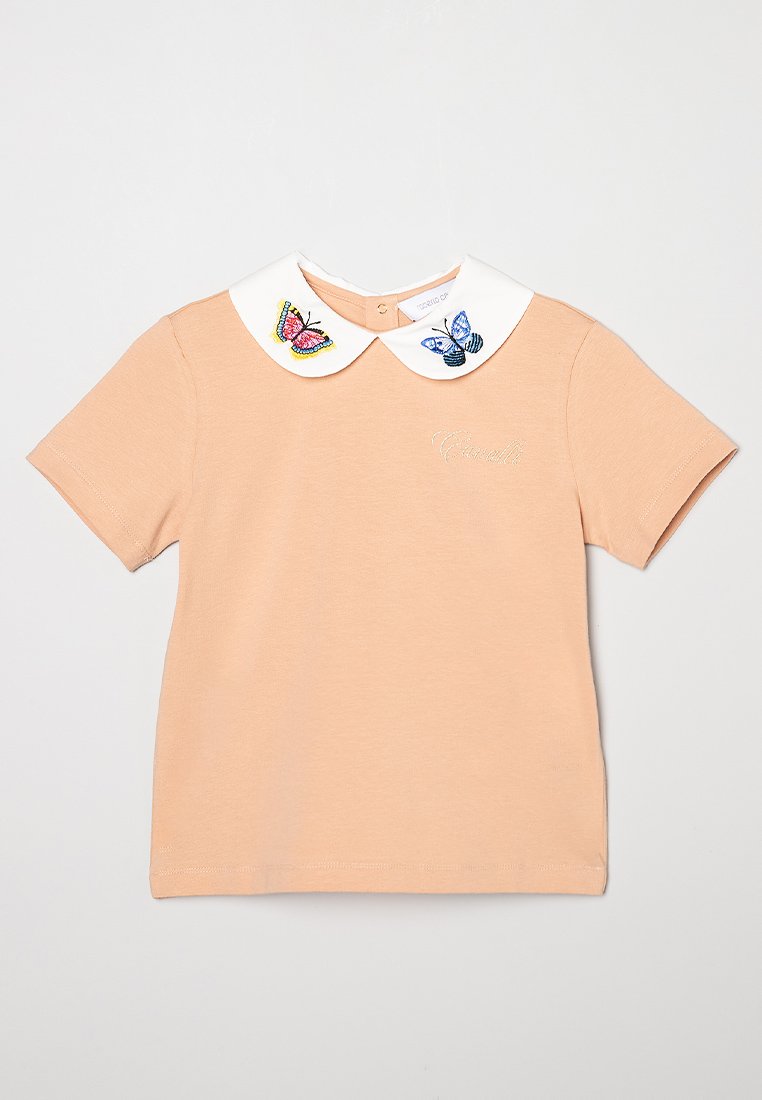 Stay cool and stylish this Spring/Summer with this casual T-shirt from Roberto Cavalli Junior. Featuring a trendy multi-colored print, this shirt is perfect for a relaxed yet chic look. Made for women of style, this T-shirt is a must-have for your wardrobe. Add a touch of luxury to your everyday outfits with this versatile top.