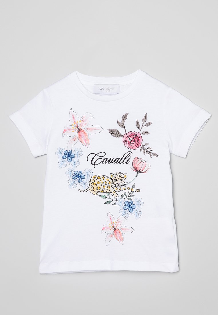 This casual style t-shirt from Roberto Cavalli Junior is perfect for the Spring/Summer season. In a crisp white color, it features a stylish print for added flair. Made for women of style, this t-shirt is a must-have for a chic and effortless look. Perfect for pairing with your favorite jeans or shorts.