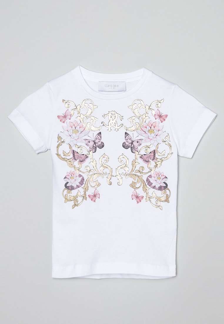 This casual style t-shirt from Roberto Cavalli Junior is perfect for the Spring/Summer season. In a crisp white color, it features a stylish print for added flair. Made for women of style, this t-shirt is a must-have for a chic and effortless look. Perfect for pairing with your favorite jeans or shorts.