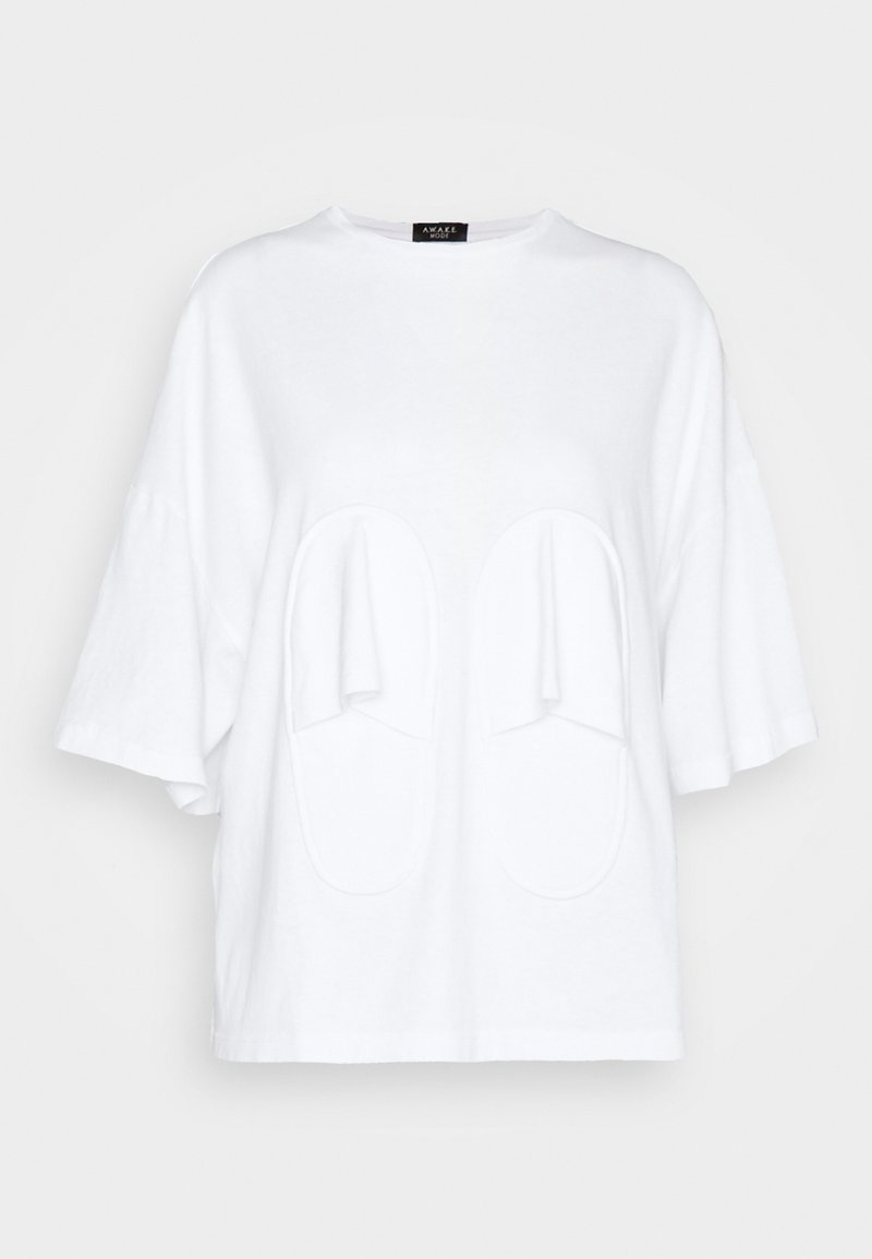 Elevate your casual style with this A.W.A.K.E. MODE T-shirt for Women in a crisp White hue. Perfect for the Spring/Summer season, this stylish tee features a unique print that adds a trendy touch to any outfit. Made for comfort and style, this shirt is a must-have for your warm weather wardrobe. Upgrade your casual look with this chic and versatile t-shirt.