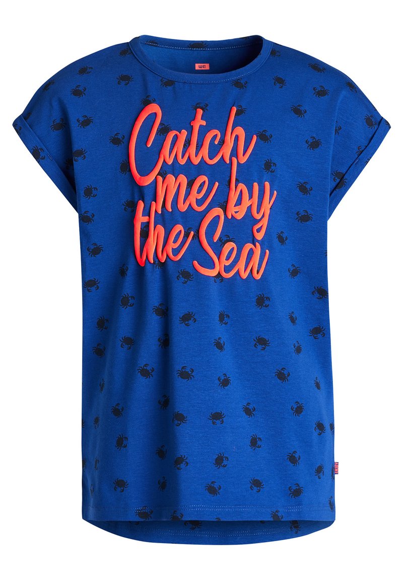 Stay effortlessly chic this Spring/Summer in the Blue Printed T-shirt for Women from WE Fashion. Made from high-quality fabric, this casual style tee is perfect for everyday wear. Featuring a trendy print, round neckline, and short sleeves, this T-shirt is a must-have for any fashion-forward wardrobe. Elevate your look with this versatile piece that pairs perfectly with jeans or shorts.