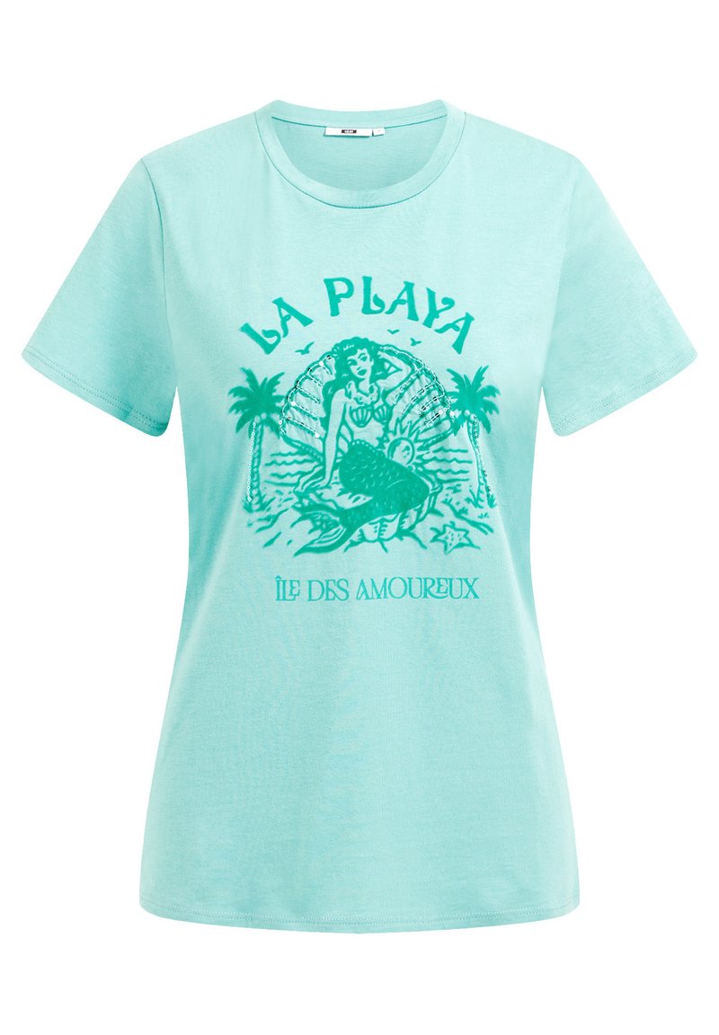 Stay effortlessly chic this Spring/Summer in the Blue Printed T-shirt for Women from WE Fashion. Made from high-quality fabric, this casual style tee is perfect for everyday wear. Featuring a trendy print, round neckline, and short sleeves, this T-shirt is a must-have for any fashion-forward wardrobe. Elevate your look with this versatile piece that pairs perfectly with jeans or shorts.