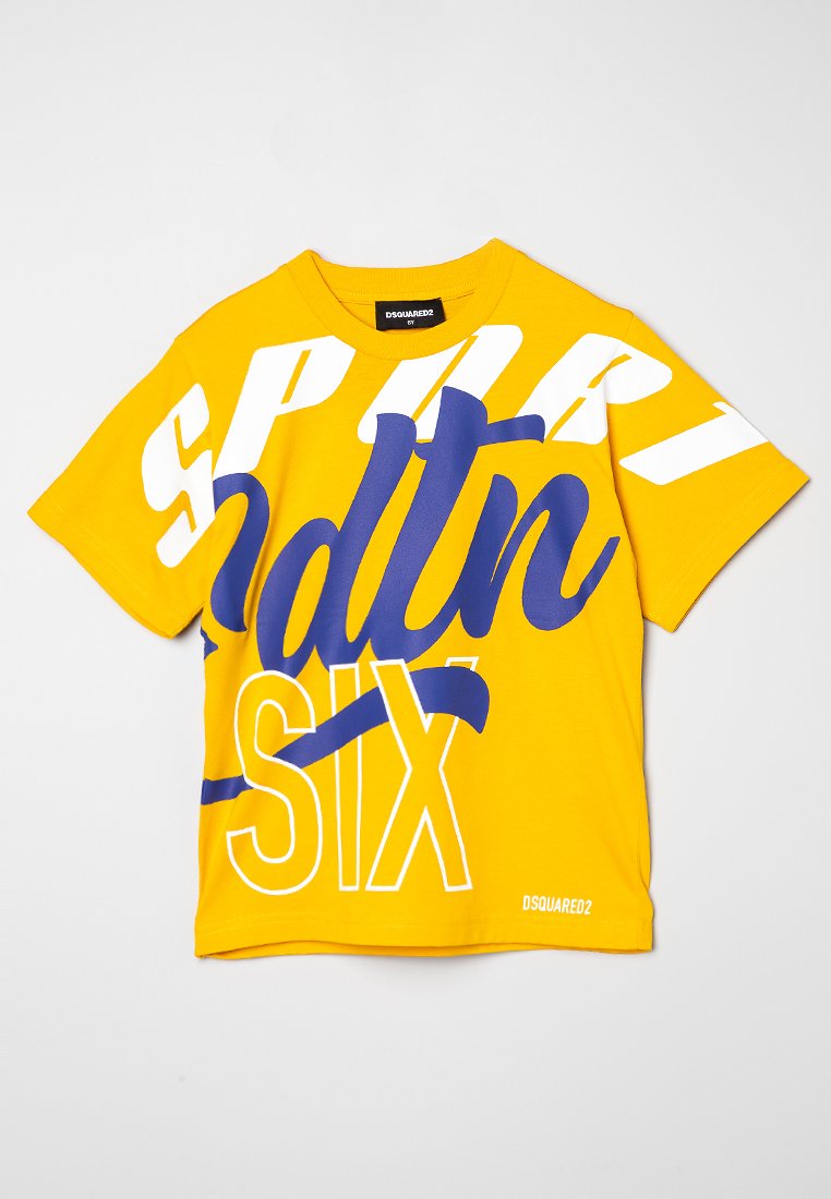 Stay cool and stylish this Spring/Summer in this casual yellow T-shirt from Dsquared2. Featuring a trendy print, this shirt is perfect for a laid-back look on sunny days. Made for women who love casual fashion with a touch of luxury, this T-shirt is a must-have for your wardrobe. Pair it with your favorite jeans or shorts for a chic and effortless outfit.
