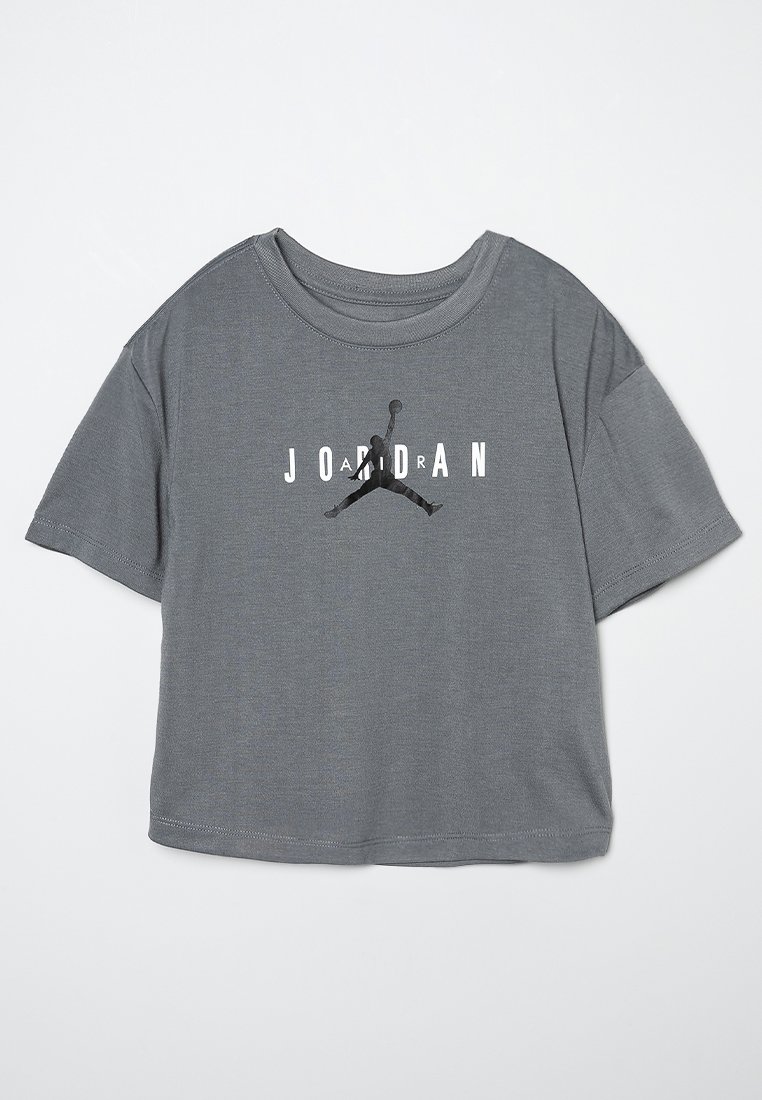 Elevate your casual style with this Jordan Women's Casual T-Shirt in Grey. Perfect for the Spring/Summer season, this trendy tee features a stylish print design. Made from high-quality materials, this shirt is both comfortable and fashionable. Pair it with your favorite jeans or shorts for a chic and effortless look.