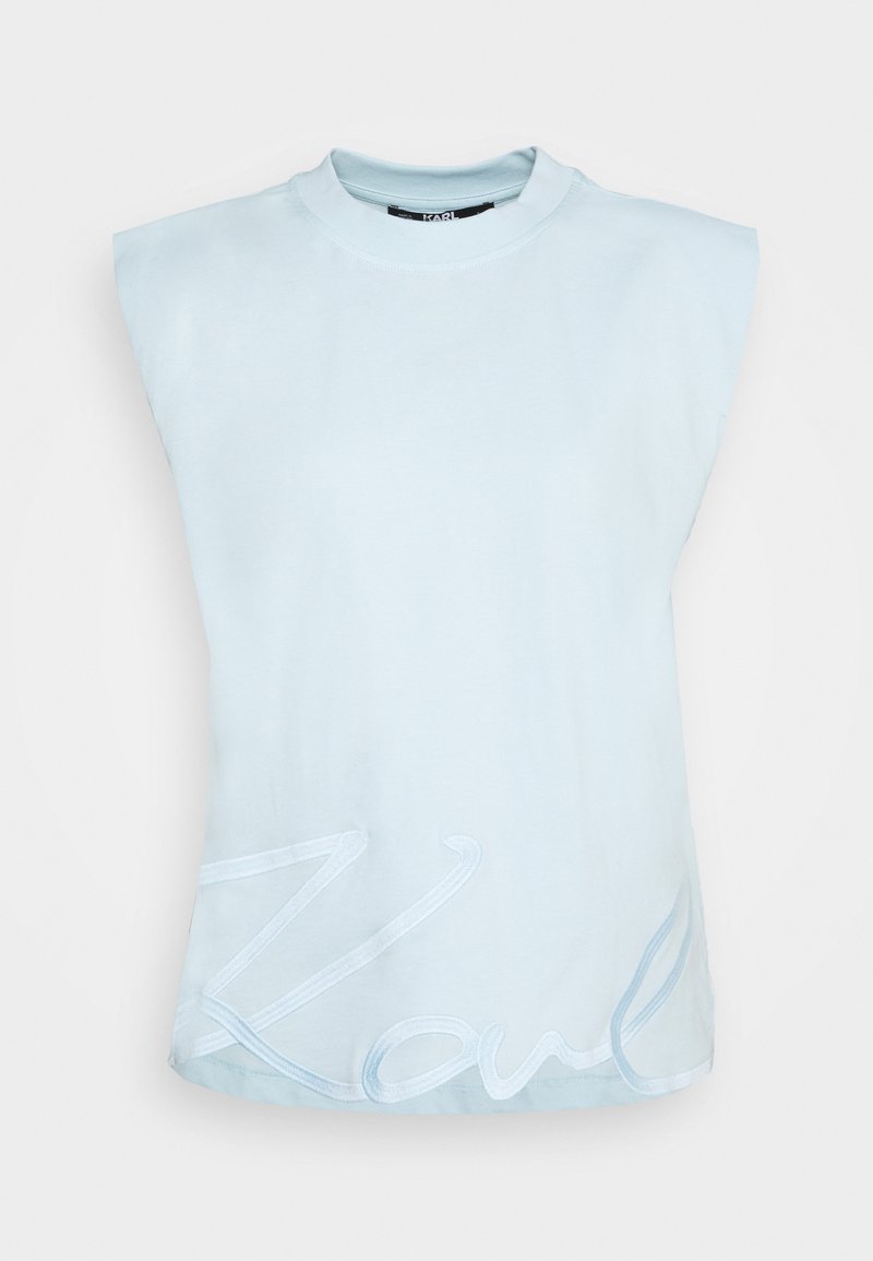 Elevate your casual look with this stylish Karl Lagerfeld graphic print t-shirt. Perfect for the Spring/Summer season, this blue tee exudes effortless chic. Made for the modern woman with a love for fashion, this t-shirt is a must-have addition to your wardrobe. Stay on-trend and comfortable in this versatile piece.