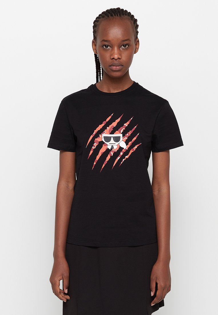 Stay effortlessly chic in this Karl Lagerfeld Women's Casual T-Shirt for the Spring/Summer season. Designed in classic black, this tee features a stylish print that adds a touch of flair to any outfit. Perfect for pairing with jeans or shorts, it's the must-have addition to your casual wardrobe. Elevate your style with this versatile t-shirt.