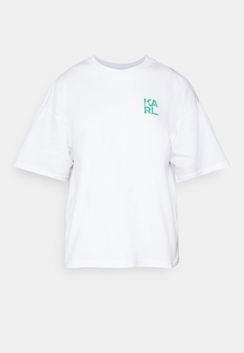 Stay effortlessly chic in this Karl Lagerfeld Women's Casual Style T-shirt for the Spring/Summer season. Crafted in a crisp white color, this tee features a stylish print that adds a touch of flair to any outfit. Perfect for a relaxed yet fashionable look on sunny days.