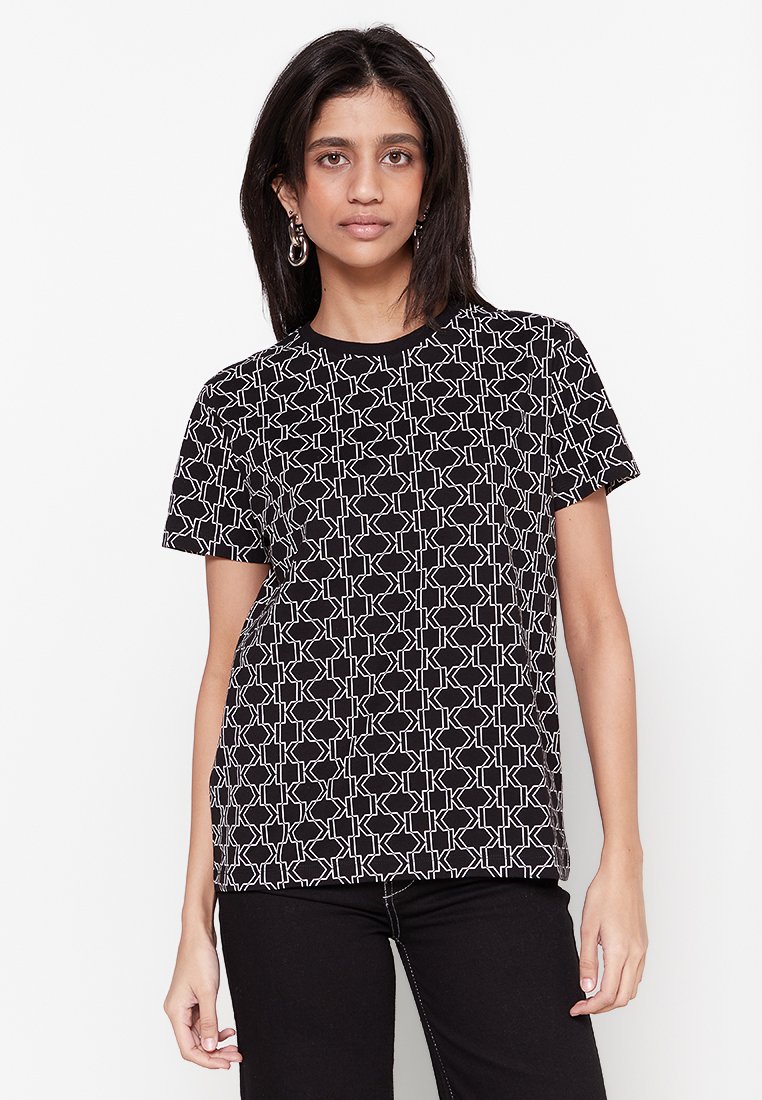 Stay effortlessly chic in this Karl Lagerfeld Women's Casual T-Shirt for the Spring/Summer season. Designed in classic black, this tee features a stylish print that adds a touch of flair to any outfit. Perfect for pairing with jeans or shorts, it's the must-have addition to your casual wardrobe. Elevate your style with this versatile t-shirt.