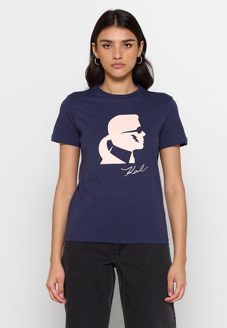 Elevate your casual look with this stylish Karl Lagerfeld graphic print t-shirt. Perfect for the Spring/Summer season, this blue tee exudes effortless chic. Made for the modern woman with a love for fashion, this t-shirt is a must-have addition to your wardrobe. Stay on-trend and comfortable in this versatile piece.