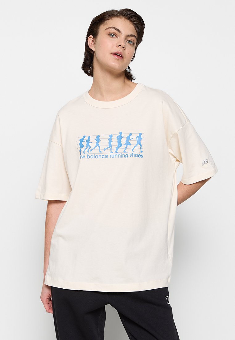 Introducing the perfect T-shirt for women who love casual style from New Balance. This beige shirt is ideal for the Spring/Summer season with its lightweight and breathable fabric. Featuring a stylish print, this shirt is both comfortable and fashionable. Elevate your warm weather wardrobe with this essential piece.