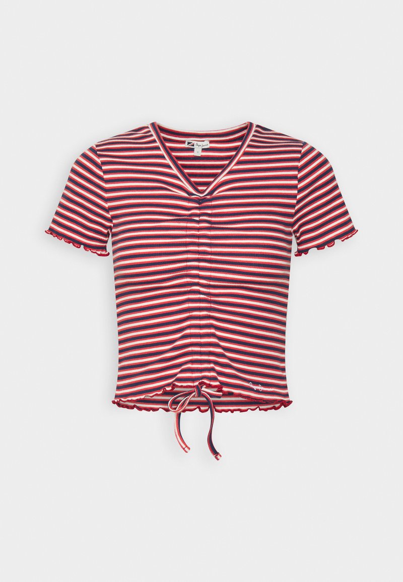 Stay cool and stylish this Spring/Summer season with the Pepe Jeans red printed T-shirt for Women. This casual yet trendy shirt is perfect for adding a pop of color to your wardrobe. Made from soft and breathable fabric, it's the ideal choice for a day out in the sun. Update your look with this vibrant and versatile piece.